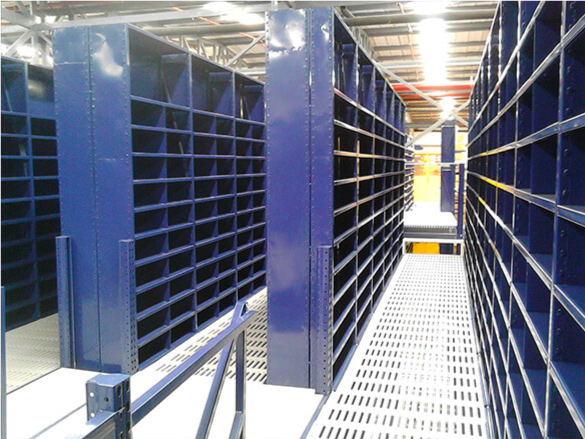 Diseño, fabricación e instalación de estructura tipo mezzanine y estantería cantilever para almacenamiento de piezas pequeñas, medianas y grandes de repuestos automotrices de reconocida multinacional ensambladora de vehículos.